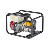 3.4kVA / 2.7kW - Honda GX200 industrial four stroke petrol engine with “oil alert”, close coupled to NSM brushless maintenance-free smooth wave form alternator.